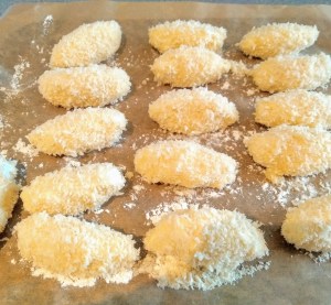 For ease you can pipe the mix into lines and simply cut it to equal lengths. However, if you’re going to the effort of making your own crockits I think it’s worth taking a bit of time to quenelle them. They don’t have to be perfect and smooth as they’re getting breadcrumbed.