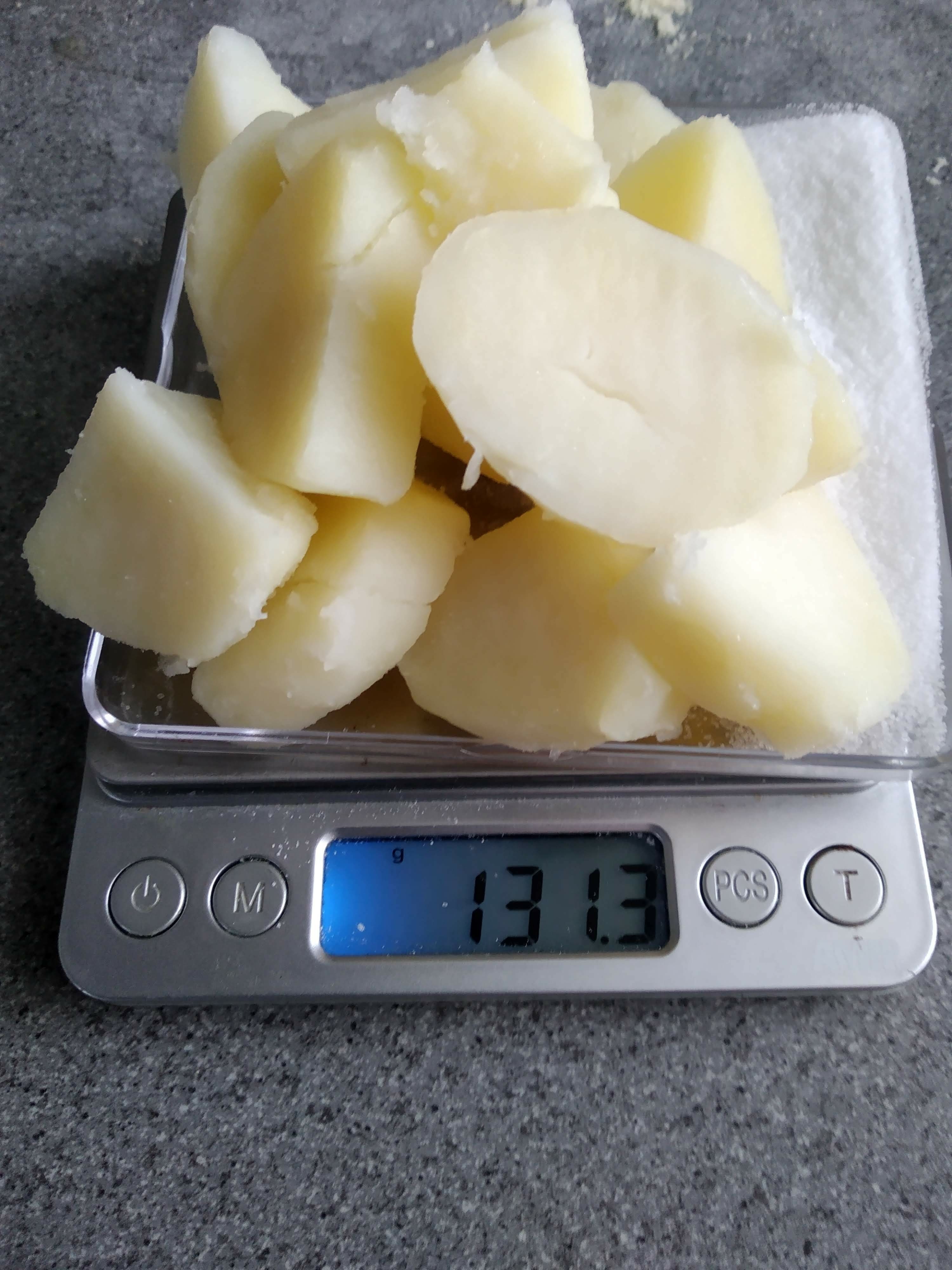 I couldn’t let him down so here’s my take on a potato bun. I didn’t have any potato flour/ starch on hand so I simply boiled and cooled some maris piper potatoes and used them.