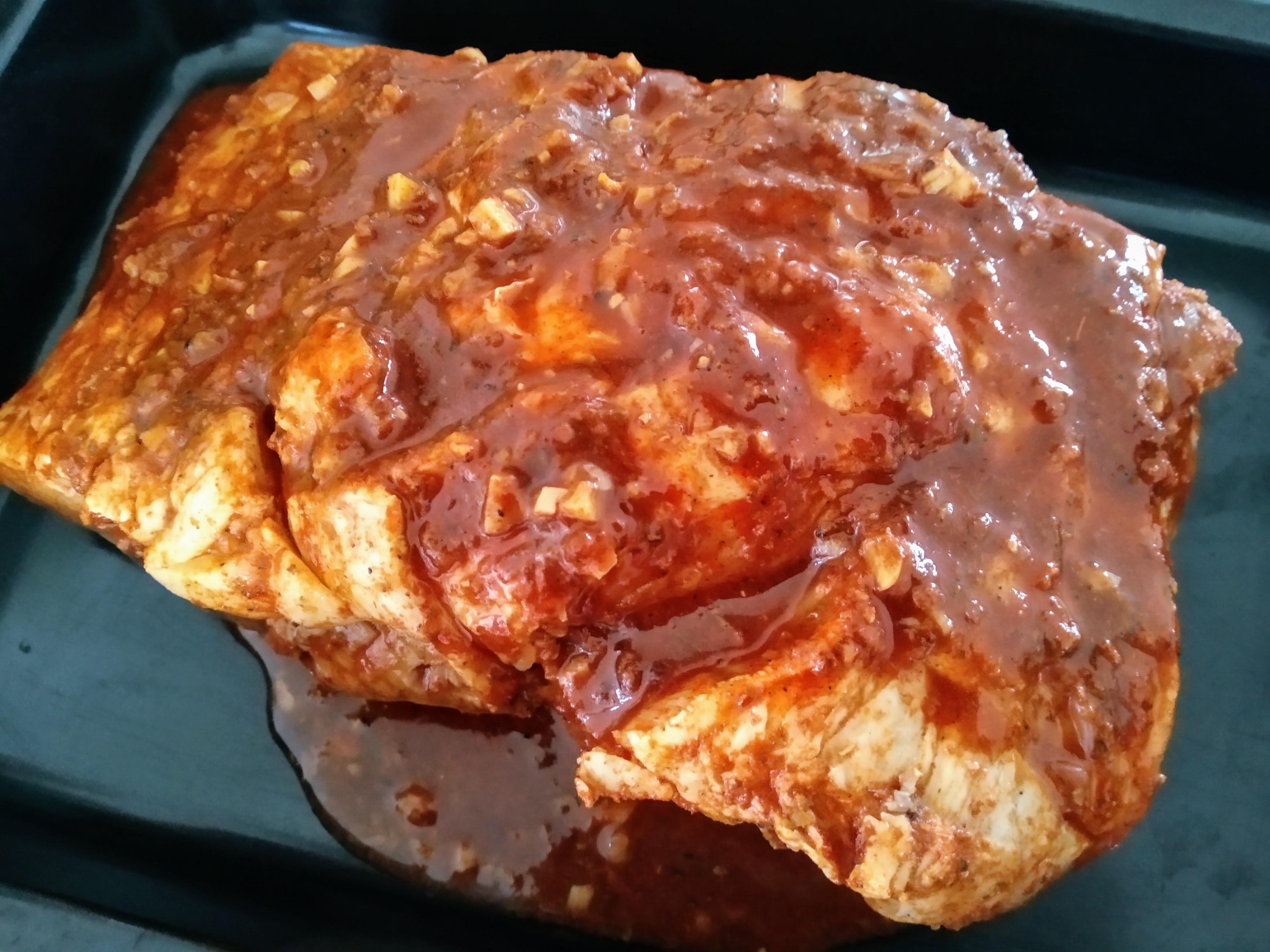 When ready to start cooking preheat your oven to 180°C and place your pork in a roasting tray and pour over the marinade.Roast the pork for about 40 minutes and flip it over and give it another 35 minutes. Pull it out and let it rest.