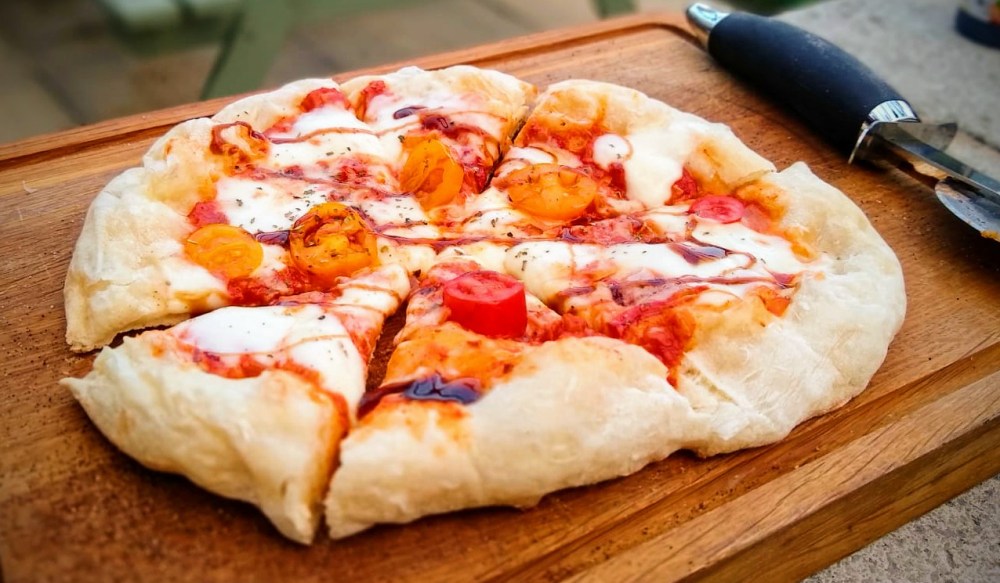 I was lucky enough to be bought a chimnea for my birthday. It features a removable grill plate that will happily seat a pizza stone, so a quick trip to ebay has seen stone baked pizza arrive in our lockdown home.After an obsessive amount of research, a couple of test runs and a comparison against a seriously good recipe from a legendary baker , I am happy to share my recipe. It’s true to the style of Naples with just four ingredients (though less rigid in specifying where they are produced) . My results have consistently had a thin and crisp base with a light, soft and flavourful crust. Allowing this dough to develop flavour makes all the difference, I tried this recipe without the overnight autolyse and it just isn’t nearly as good. If you want a quicker recipe you won’t be disappointed with Clive Mellum’s or actually with any of his recipes.The slight weakening of the gluten structure that the overnight autolyse can cause is no problem with good strong flour so there’s no need to add more flour the next day.Often recipes for Italian style pizza dough recommend 00 flour. Just be aware in Italy there are two types of 00 flour one for pasta and one for bread sometimes the one for bread is also called 000. If in doubt an good strong flour works fine. I have tested this recipe with 4 different strong flours with no problems.