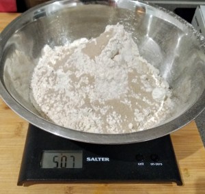 Scrape the dough into a bench mixer and add the salt and mix on a medium speed for about 10 minutes. You should have a sticky and stretchy dough.Cover again and either refrigerate until and hour before you want to start cooking or crack on with the last few steps.Flour a board and your hands and then scrape the dough onto the board and scale into 6 roughly even lumps. If you want accuracy use scales and divide it into 140g balls.