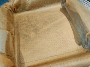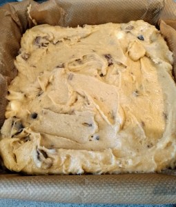 Once fully mixed, spread the batter out evenly into the lined tin.