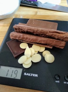 Decide on and weigh out any chocolate or flavouring you want to add. I chose a selection of bits from the cupboard.