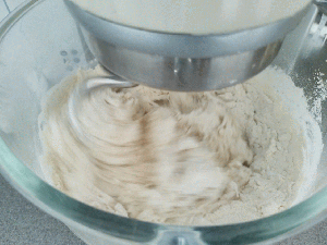 Put the remaining 830g flour, the yeast and the remaining 430g water in a mixing bowl along with the cool flour and water paste. If you don’t have the patience to cool the paste it’s fine just make sure the water you add is good and cold and you keep the hot paste away from the yeast until you start mixing.