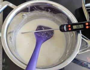 In a small pan take 45g of the flour and 225g water and mix together and heat to 65°C (a few degrees either way doesn’t matter too much) over a medium heat. Stir well as it heats and once heated, cover and set aside to cool. This can all be done in the microwave in a non metallic bowl if you prefer, just give it 20-30 seconds at a time and stir in between heating cycles.